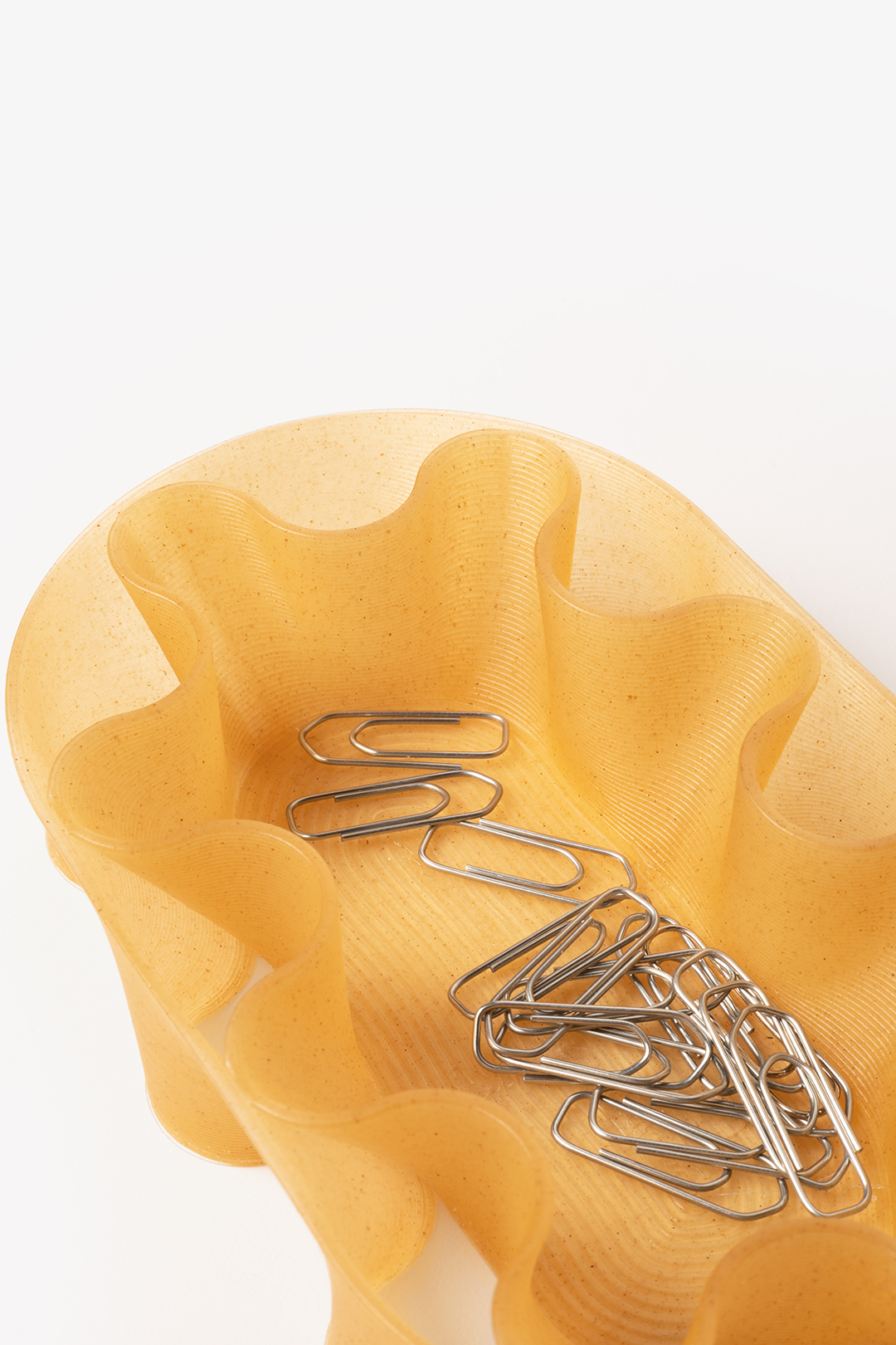 The three-piece collection BIVALVE consists of a tray, a bowl and a cup – for storing everyday things. All objects are built from two shapes that merge into each other, giving the structure its strength and function. Inspired by seashells and 3D printed from bioplastic, they naturally enhance the workplace and support better organization.