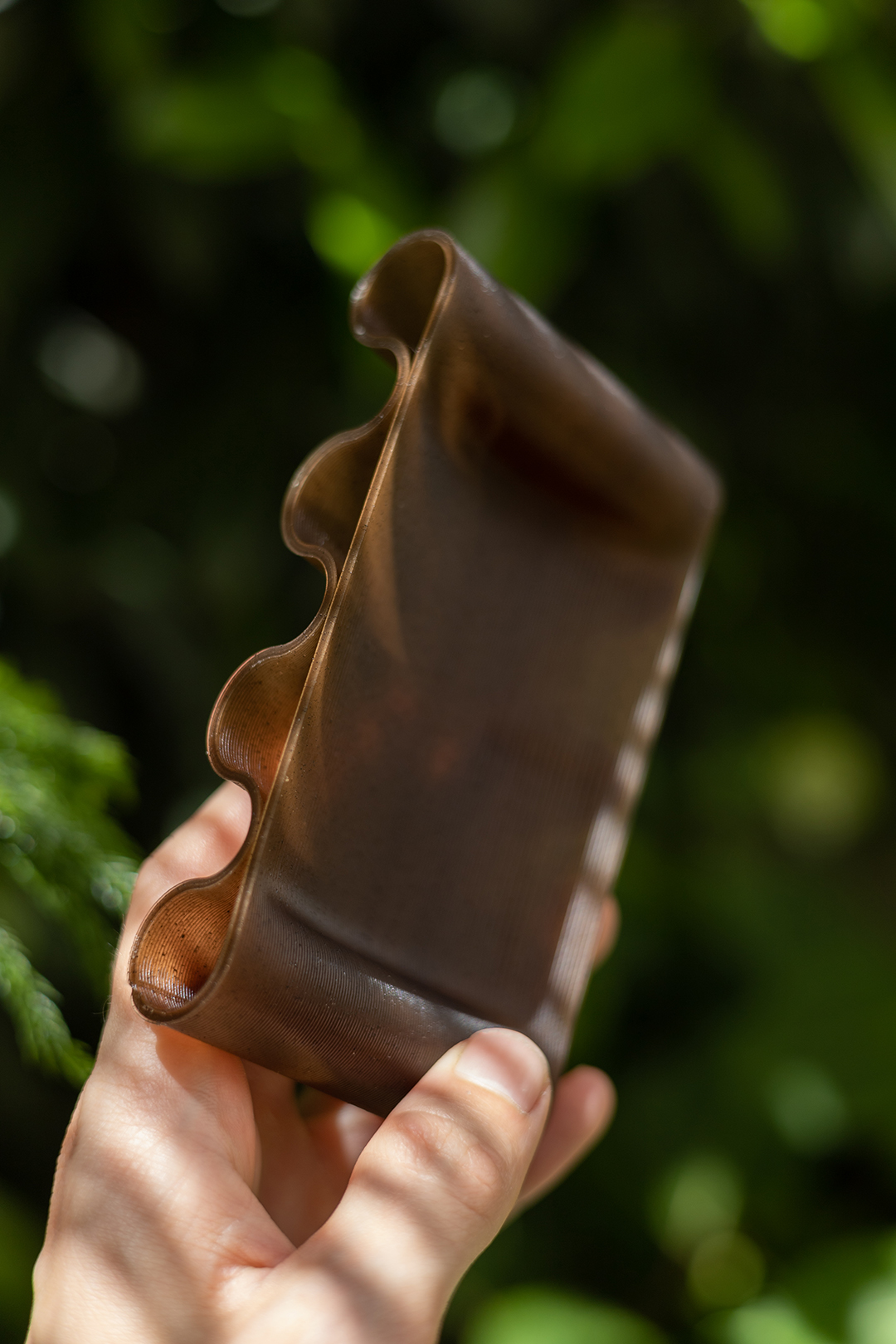 3D-printed tray of bioplastic mixed with waste from food industry.
